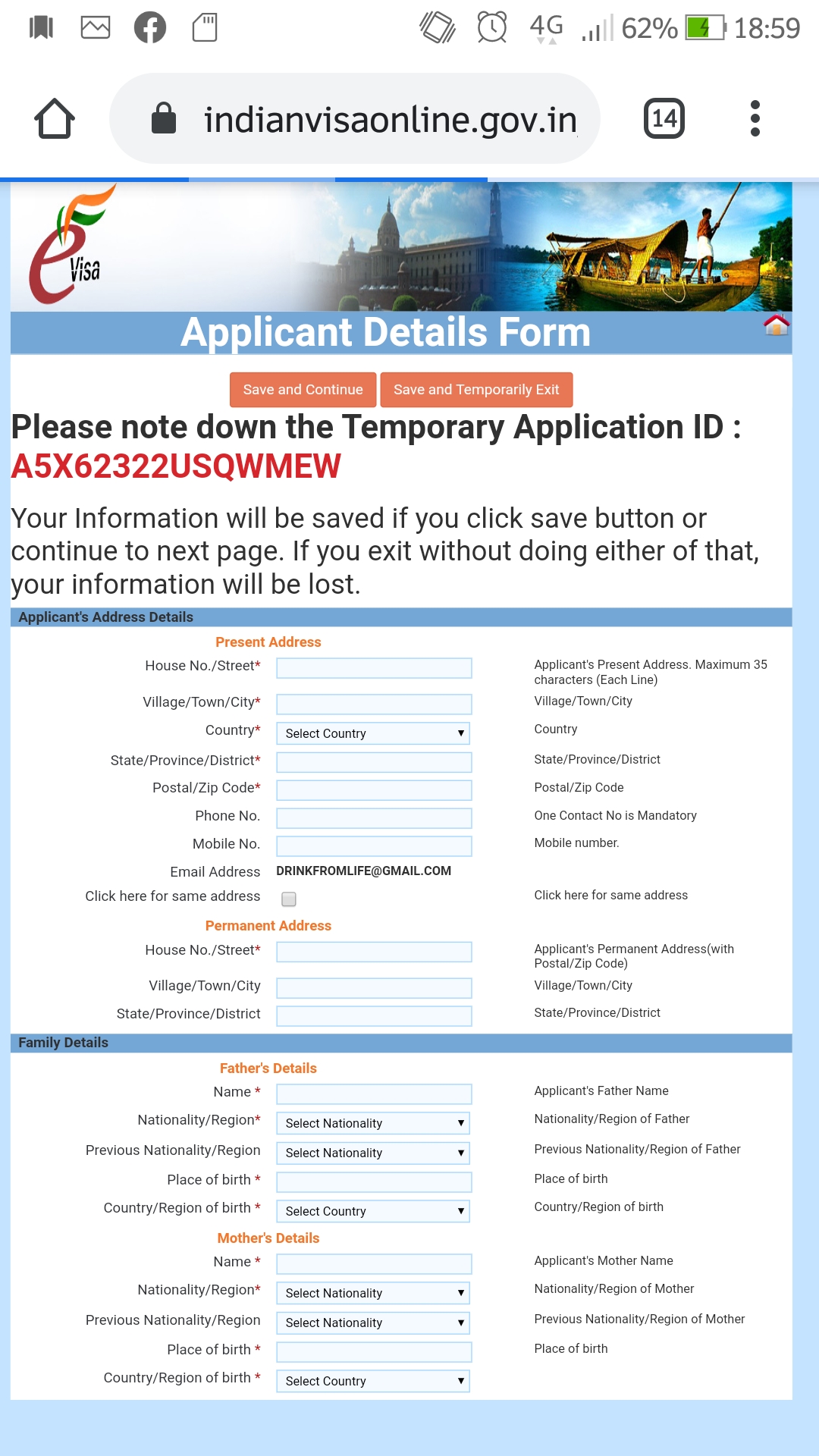 Ricordati di trascrivere il temporary application ID. Ti servirà per salvare le informazioni e poi rientrare successivamente per continuare o verificare lo stato del tuo e-Visa.