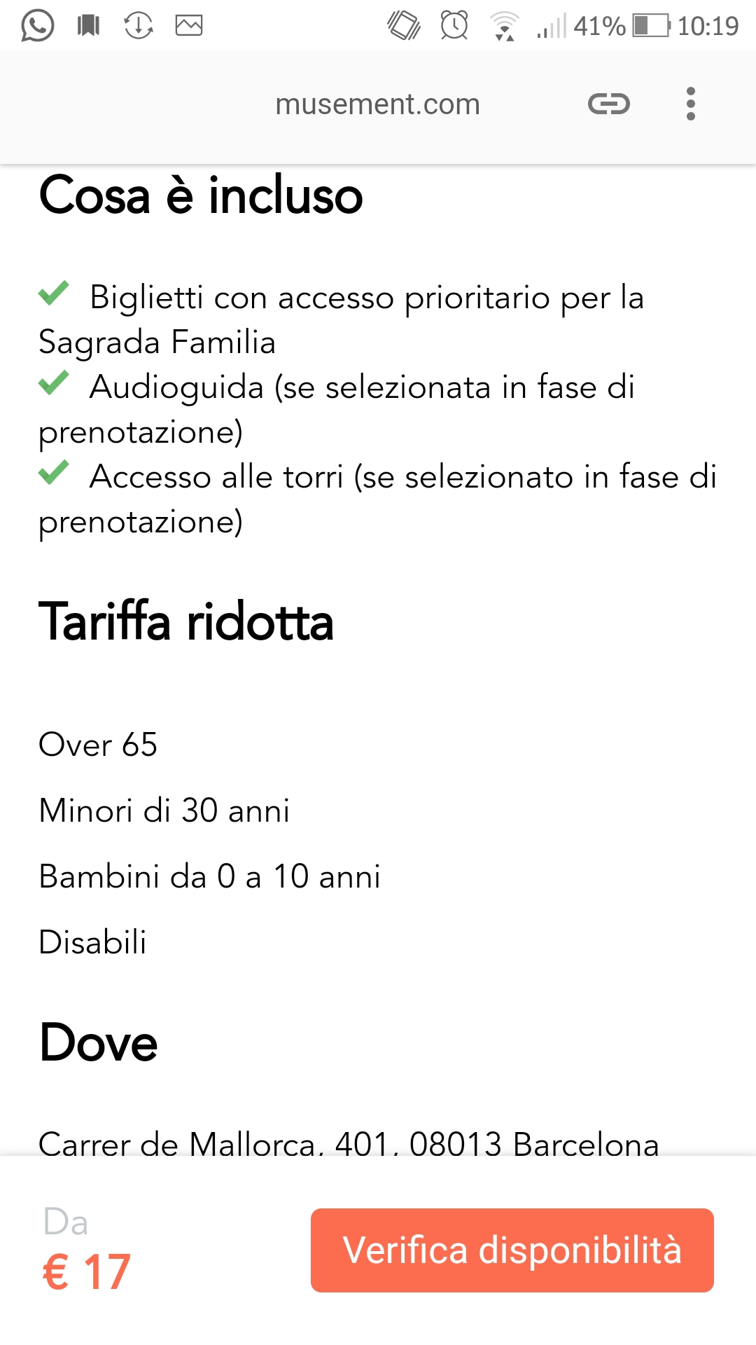 Una volta effettuato l’acquisto, la strada per giungere alla Sagrada Familia sarà tutta, metaforicamente, in discesa. Sono molto interessanti anche le proposte Musement di visite combinate. Un esempio? Il tour guidato – della durata di 4 ore e 30 – con ingresso prioritario alla Sagrada Familia, torri incluse, e Parc Güell. Rappresentano una buona opportunità per visitare con calma almeno 2 delle 7 opere di Gaudì che l’Unesco ha dichiarato Patrimonio dell’Umanità. Non male, eh?