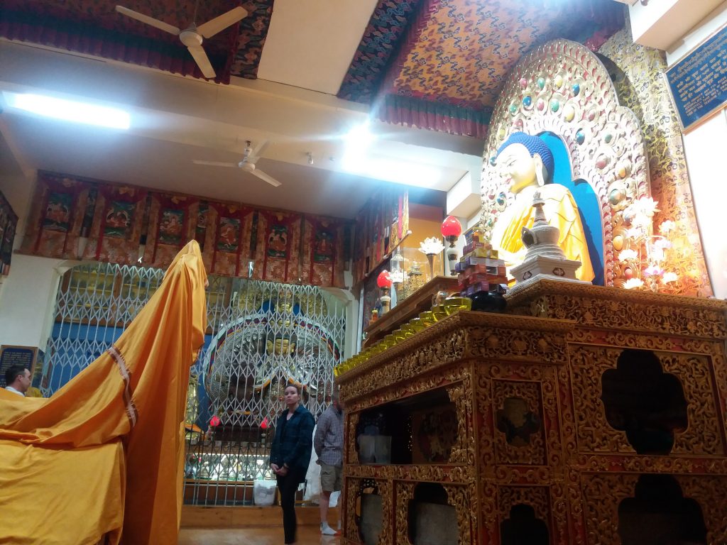Qui abbiamo assistito, nel pomeriggio, a fortissime cerimonie di tantrismo tibetano. Nella sala centrale c’è un bellissimo Buddha dorato dal sorriso compassionevole, protagonista anche di numerose fotografie da parte in turisti indiani. Ah, la tecnologia! Ma anche questo fa parte del gioco cosmico.