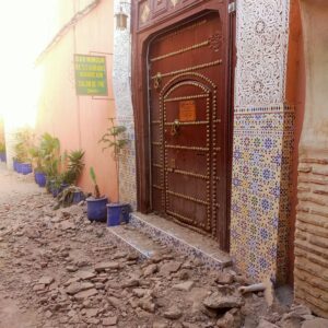 Durante il mio giro di ricognizione, e commissioni, al centro di Marrakech, sono anche andata a vedere se l’hotel in cui vado spesso, quando viaggio in solitaria qualche giorno, fosse in piedi. Lo era ed ho tirato un sospiro di sollievo pensando alle persone che ci lavorano dentro e che ci dormono. Ho continuato a camminare sulla mia strada, trovando tutto aperto.